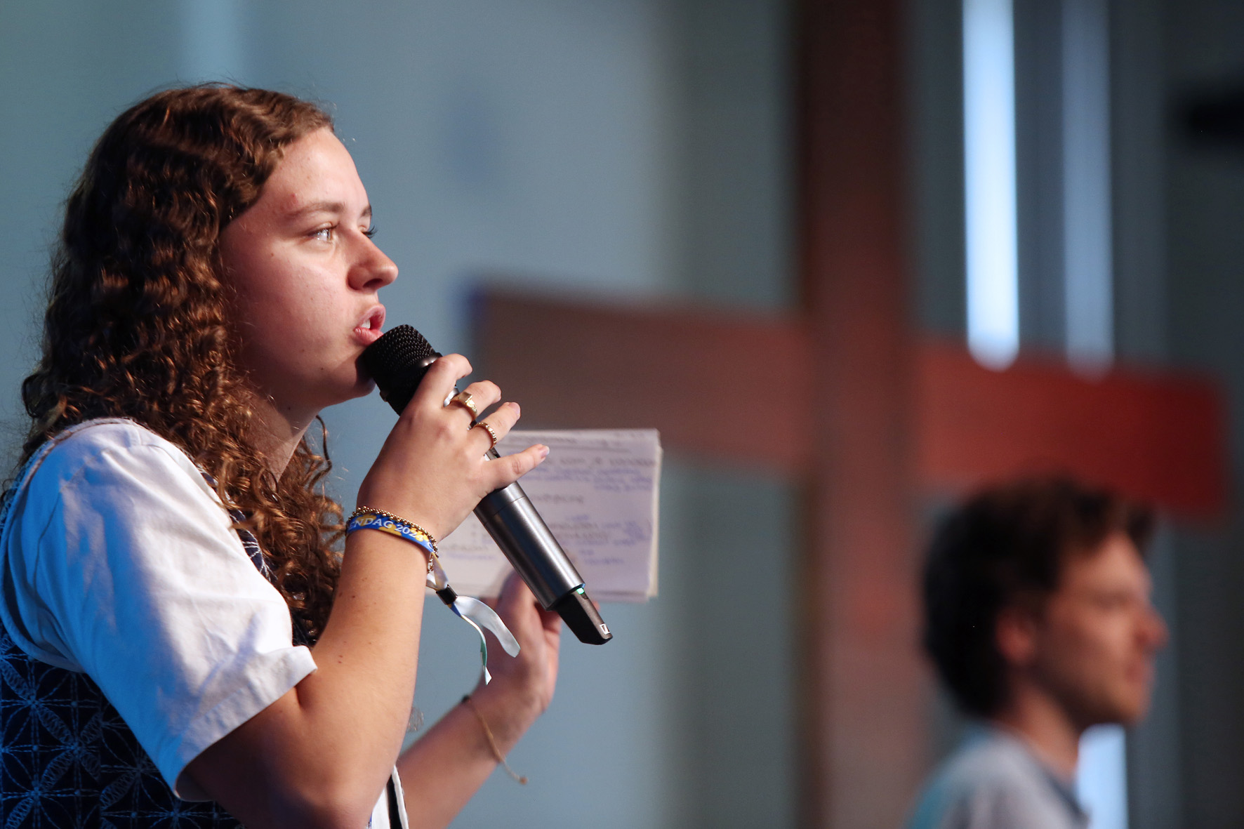 ‘Genade is gratis, de kerk niet’ Bij het startmoment waren er twee lezingen, namelijk van mgr. Rob Mutsaerts en Corina Nagel-Herweijer. Nagel-Herweijer (foto) is onderwijskundige en theoloog in de Protestantse Kerk in Nederland en zij vertelde over het belang om jongeren bij Actie Kerkbalans te betrekken. “Genade is gratis, maar de kerk niet”, zo vatte zij de boodschap voor jongeren samen. “Jongeren zijn niet de kerk van de toekomst, zij zijn de kerk van nu. Daarom is het goed om jongeren volwaardig mee te laten doen in alle aspecten van kerk-zijn.” Hierbij benadrukt ze ook twee risico’s voor kerken: “Het eerste risico is dat jongeren in een vergrijzende kerk het gat op de begroting moeten gaan dichten. Jongeren zullen niet voor een megaverschil op de begroting gaan zorgen. Daar zijn jongeren nu eenmaal te weinig vermogend voor. Ook moeten we voorkomen dat we jongeren instrumentaliseren. Dan gaat het ons als kerk niet om de jongeren zelf, maar is het doel om een sluitende begroting te krijgen en zijn betalende jongeren het middel. Dan doen we jongeren echt tekort. Zij hebben waarde, ook als ze niet geven.